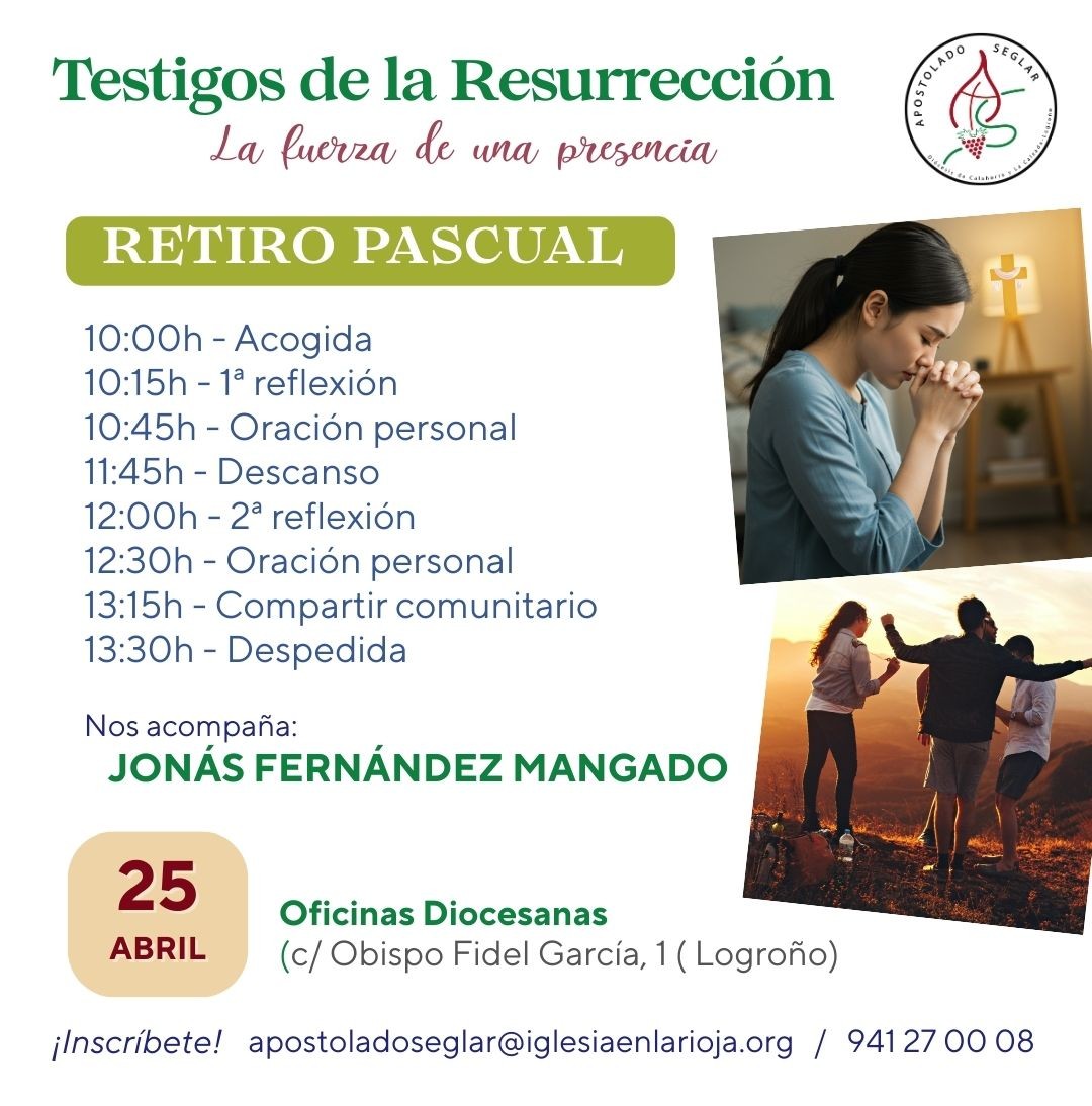 En el corazón vibrante del tiempo de Pascua, cuando la alegría de la tumba vacía renueva nuestra esperanza cristiana, ya están formalmente abiertas las inscripciones para el esperado Retiro Pascual 2026. Bajo el sugerente y profundo lema «Testigos de la Resurrección. La fuerza de una presencia», este encuentro espiritual tendrá lugar el próximo sábado 25 de abril en las Oficinas Diocesanas de Logroño. Se trata de una cita ineludible para todo el laicado riojano, diseñada para detener el acelerado ritmo cotidiano y acoger el misterio del Cristo Resucitado que nos impulsa a ser luz en medio de la sociedad.
