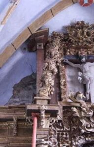 Tras tener conocimiento el pasado día 14 de febrero de la situación del retablo Mayor de la iglesia de san Blas, sobre la alarmante la situación de la columna superior en el lateral izquierdo del ático, que, sin sujeción alguna, se apoya sobre la mazonería, que es lo único que ha evitado la caída del mismo.