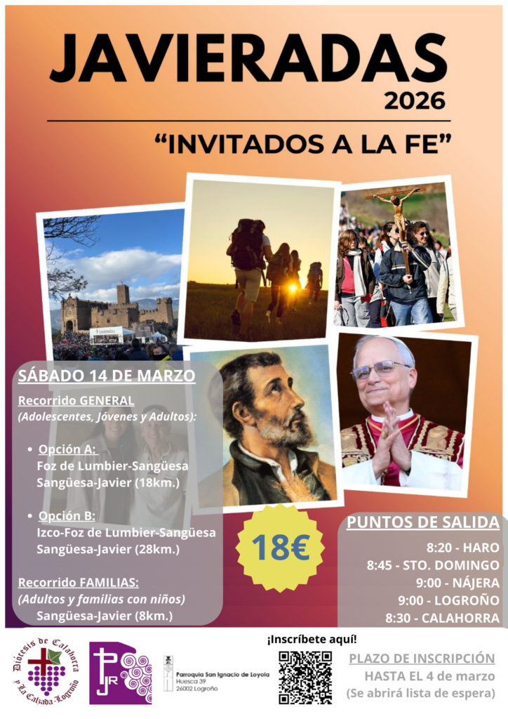 El próximo sábado 14 de marzo de 2026, la Diócesis de Calahorra y La Calzada-Logroño se pondrá nuevamente en camino para vivir una de las citas espirituales y comunitarias más esperadas del año: las Javieradas 2026. Bajo el inspirador lema “Invitados a la fe”, esta emblemática peregrinación hacia el Castillo de Javier se presenta como una oportunidad inmejorable en plena Cuaresma para renovar nuestro compromiso cristiano. Organizada por la Pastoral Juvenil de la Diócesis en colaboración estrecha con la Parroquia de San Ignacio de Loyola de Logroño, la jornada convoca a fieles riojanos de todas las edades a caminar tras las huellas misioneras de San Francisco Javier.
