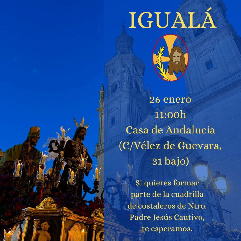 La Cofradía de La Entrada de Jesús en Jerusalén invita a todos los interesados a la igualá de costaleros de Nuestro Padre Jesús Cautivo
