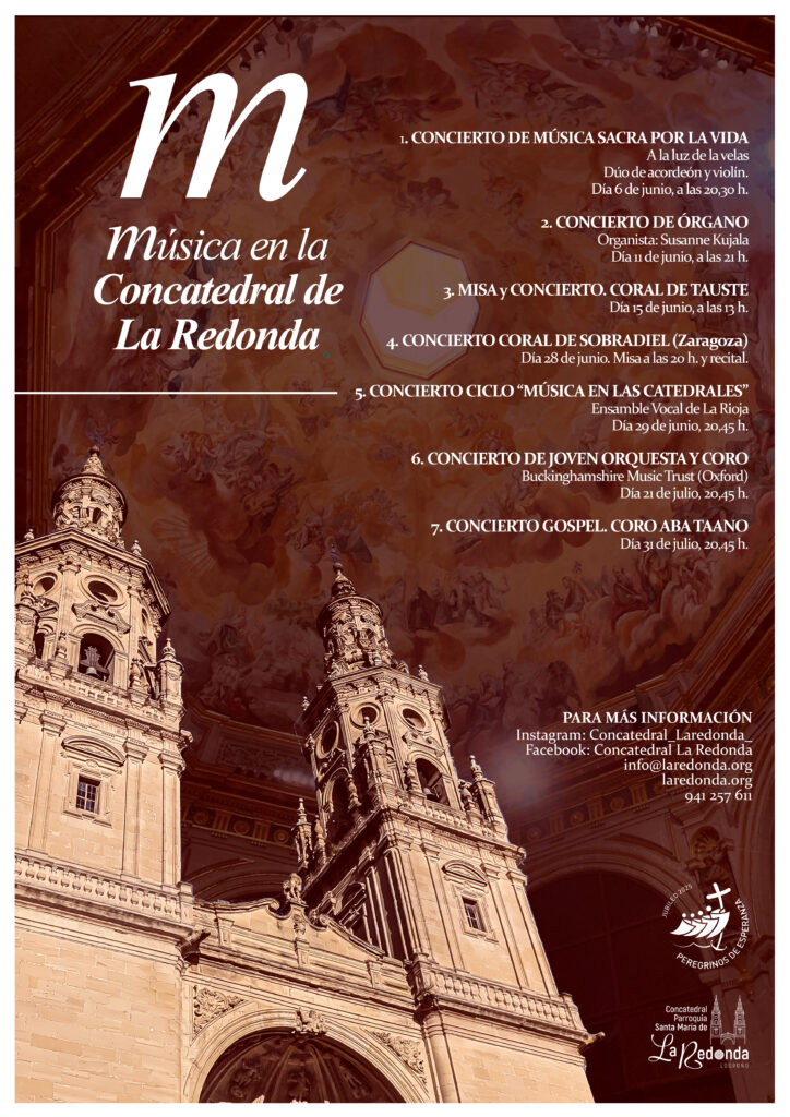 La Concatedral de Santa María de la Redonda de Logroño acoge un nuevo ciclo de conciertos, bajo el título “Música en La Redonda”, programado para este verano, del que todos los riojanos van a tener la oportunidad de disfrutar, interpretados por grupos vocales e instrumentales de gran prestigio internacional.