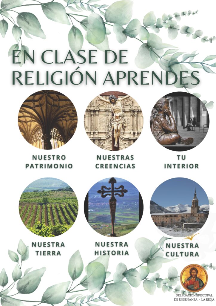 En clase de Religión Católica se aprende nuestro patrimonio: La Rioja es una tierra llena de monumentos, catedrales, basílicas, colegiatas, monasterios, iglesias, ermitas…que son el orgullo de todos los riojanos. Se aprenden nuestras creencias: La Rioja es tierra de santos, de mártires. Desde Emeterio y Celedonio en el s. III, hasta san Jerónimo Hermosilla, martirizado en Vietnam en el s. XIX, pasando por san Millán, santo Domingo, san Felices o san Ezequiel Moreno. Se aprende sobre nuestra interioridad: esto bien lo conocen nuestros monjes y monjas de la vida contemplativa. También se aprende el respeto a la casa común que es la tierra riojana: ese mar de viñas que tiñe de colores el otoño, las nieves del San Lorenzo o las vegas de nuestros ríos. Se aprende nuestra cultura y nuestra lengua que nació en los Monasterios de Suso y Yuso, y que dio sus primeros pasos con los poemas de Gonzalo de Berceo. Aprendemos sobre nuestra historia riojana, el pasado, que nos da raíces, forja nuestro presente y nos impulsa al futuro: la Calagurris romana donde surgió nuestra Diócesis; Santo Domingo de la Calzada que nos unió con Europa a través del Camino de Santiago; y San Bernabé y la Virgen de la Esperanza que nos ayudaron a defender nuestra libertad de logroñeses.
