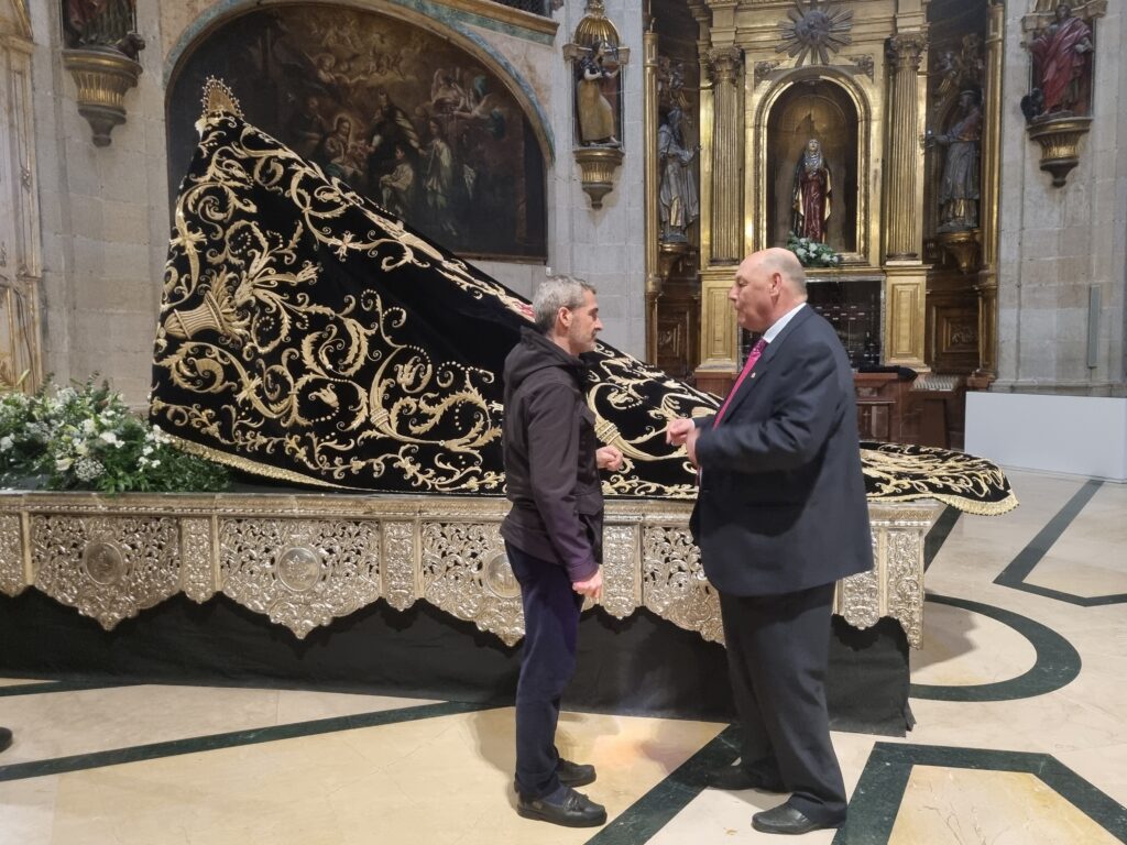 El acto de presentación del Manto restaurado ha contado con la presencia del Hermano Mayor de la Cofradía Nuestra Señora la Virgen de La Soledad, Luis Ducrós, y del restaurador Sebastián Marchante.
