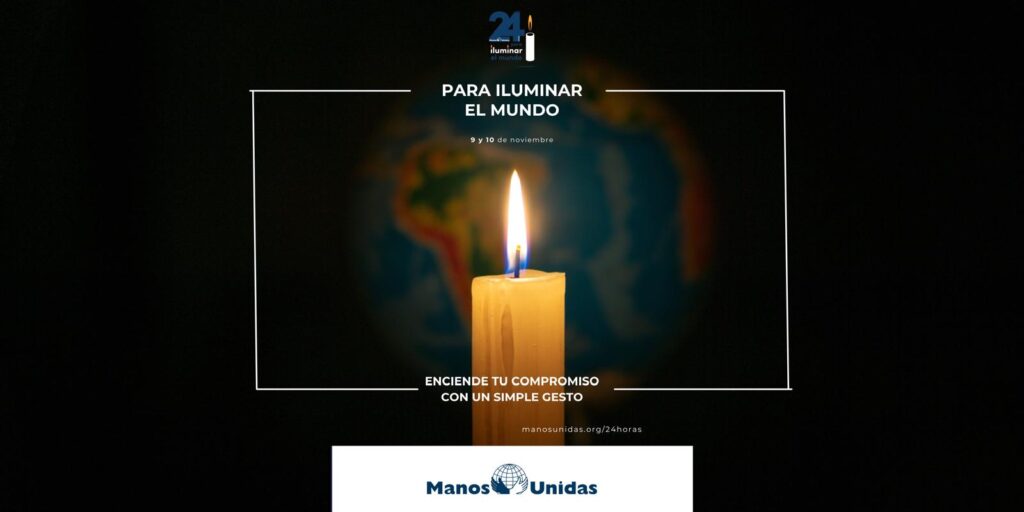 Este fin de semana del 9 al 10 de noviembre tendrá lugar las “24 Horas” de Manos Unidas: una acción global de solidaridad y compromiso por un mundo más justo, dónde personas de todo el mundo se conectarán a través de la luz de una vela simbolizando la esperanza y su compromiso con los más vulnerables del planeta.