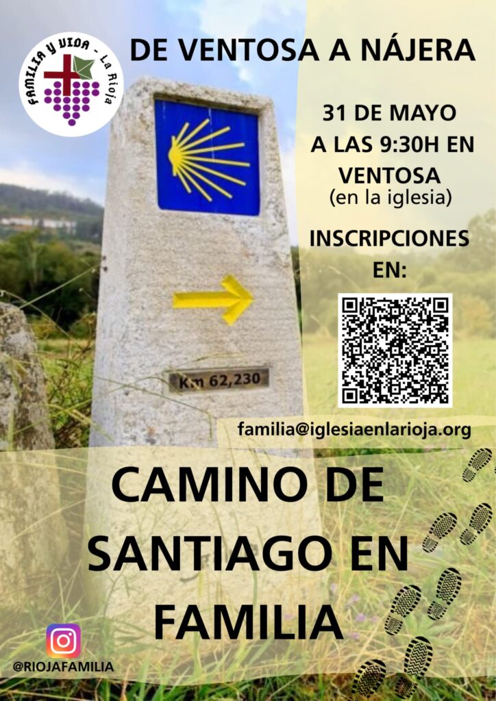 Será el día 31 de mayo a las 9:30 en Ventosa y se comerá en Nájera, cada uno deberá llevar su comida. La inscripción es gratuita y se puede hacer a través del código QR que hay en el cartel o bien enviando un email a familia@iglesiaenlarioja.org