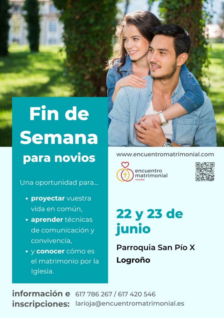 Encuentro Matrimonial ha programado un fin de semana de preparación al matrimonio para los días 22 y 23 de junio, dando así servicio a todas las parejas que quieren contraer matrimonio estos próximos meses y que por alguna razón no han podido realizar el curso prematrimonial.