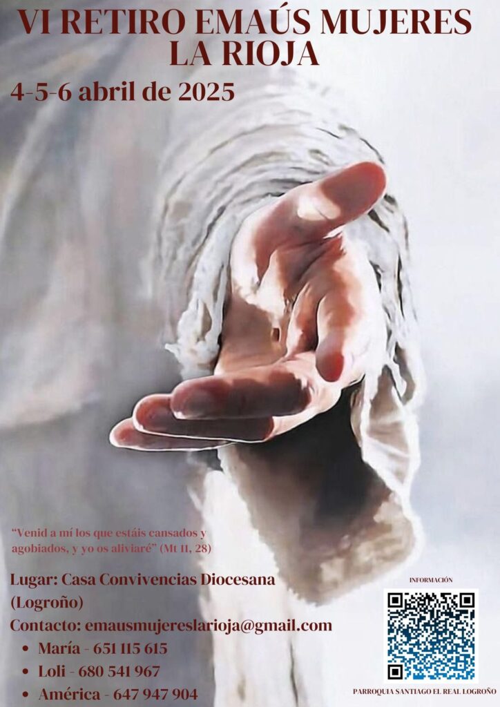 El Retiro de Emaús nos ofrece ese tiempo para sentir paz, amor y tranquilidad y nos concede la oportunidad de aprender a conocernos mejor y a sentir la presencia de Dios en nuestras vidas. Se trata de un retiro parroquial ya que los retiros siempre están unidos a una parroquia, en este caso la Parroquia Santiago el Real de Logroño. El retiro, impartido durante un fin de semana por laicos para laicos, cuenta con el acompañamiento de los sacerdotes de la parroquia y está apoyado por el Obispo de la Diócesis.