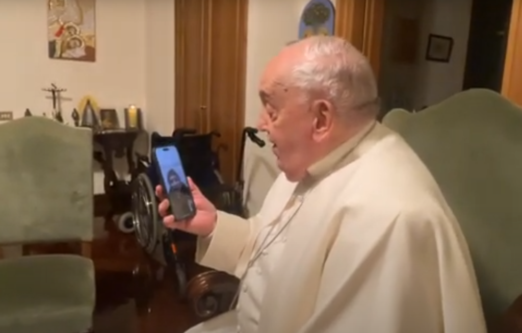 Una cita fija de unos instantes, para preguntar simplemente «¿cómo estás?», para indagar si han comido y qué, para ver a los niños, a los ancianos, para bendecir y saludar. Es una hora más en Gaza, son las 8 de la tarde, se puede ver en el vídeo que hace frío, pero es sólo el frío en el aire, no el frío de la muerte inminente que reina desde hace casi quince meses; desde el domingo hay una tregua. El 12 de enero, todo el mundo salió a celebrar y vitorear el alto el fuego y la llamada del Papa se convirtió en «una fiesta» en la plaza, según declaró el párroco a los medios de comunicación vaticanos. Aún no es la paz, pero la gente vuelve a sonreír. Y a comer. «¡Esta noche, en todo el recinto, hemos comido pollo! Alitas de pollo!», explica el padre Yusuf durante la llamada. Contesta primero el Papa, conectado por el teléfono de su secretario Juan Cruz Villalón. No suenan ni cinco timbres, luego la exclamación: «¡Buenas tardes, Santo Padre!». Tiene el tono de quien ve y oye al Papa por primera vez, mientras que Francisco llamó hace menos de veinticuatro horas.