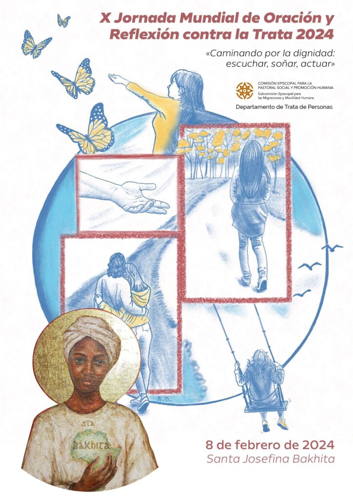 «Caminando por la dignidad: escuchar, soñar, actuar» es el lema de la X Jornada Mundial de Oración y reflexión contra la Trata de Personas 2024, que se celebra el 8 de febrero, coincidiendo con el día en que la Iglesia celebra la memoria litúrgica de Santa Josefina Bakhita. El papa Francisco propuso por primera vez hace diez años la celebración de esta Jornada.